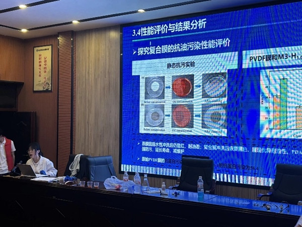 (图:贵州大学志愿者在普觉镇中学开展科学讲堂,展示探究复合膜的抗油污性能,讲解材料科学前沿知识)